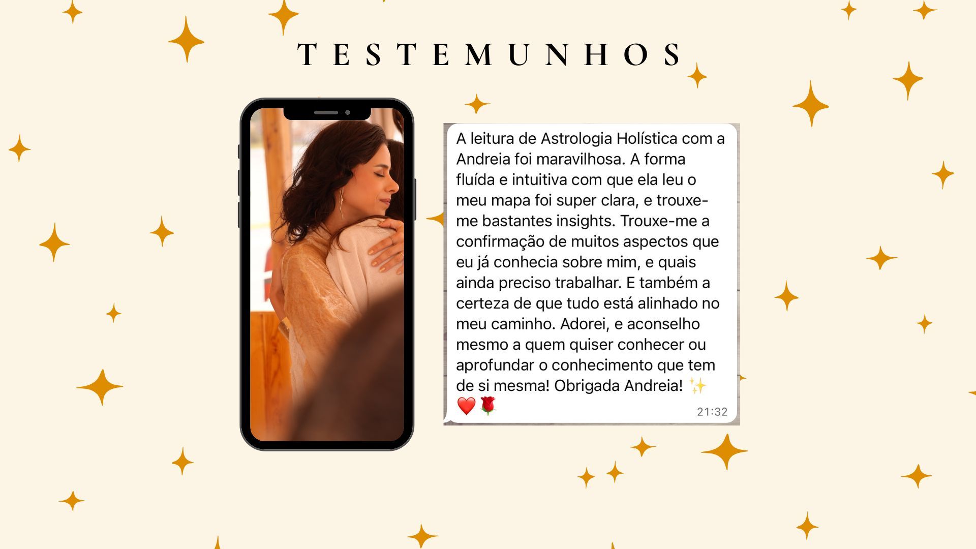 Acredito que quando compreendemos os ritmos do Universos e aprendemos a respeitar os nossos próprios ciclos, encontramos um caminho de transformação e plenitude. Estou aqui para te ajudar a viver essa conexão de forma consciente e integrada.